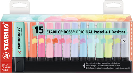 Evidenziatore Stabilo Boss Pastel - Set scrivania 15 pezzi