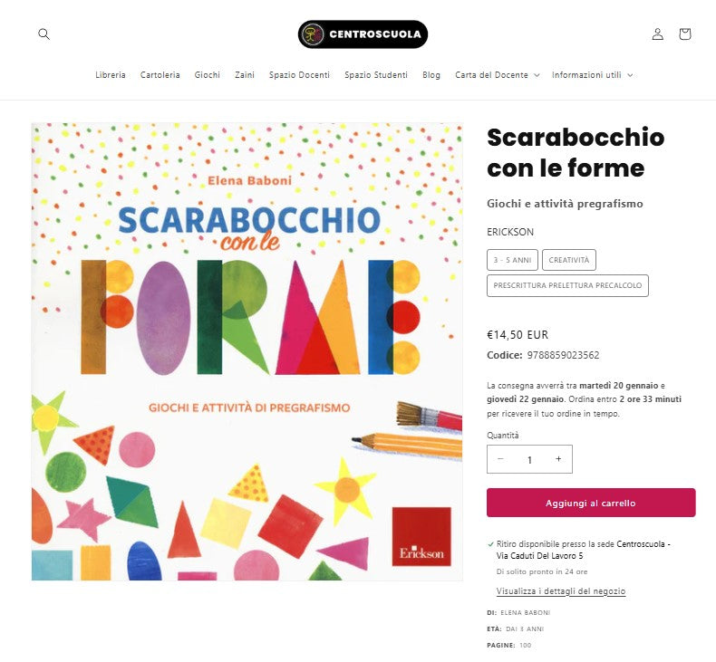 Le spese di spedizione verranno calcolate al check-out e dovranno essere pagate con un metodo di pagamento diverso dalla Carta del Docente.