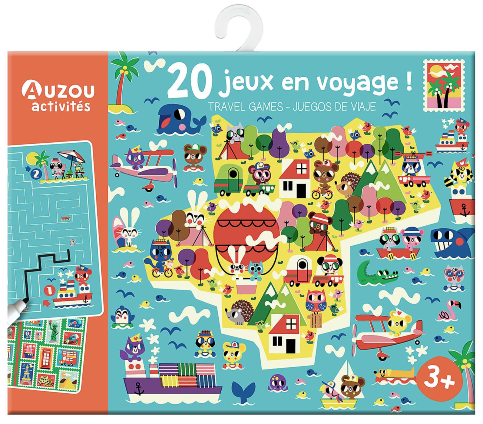 La pochette, compatta e tematica, è pensata per offrire ore di attività in viaggio. Sul fronte delle carte, i bambini troveranno 20 giochi riutilizzabili, inclusi classici come labirinti e cerca e trova, indovinelli, punti da unire e sfide "trova le differenze". Il grande punto di forza è la possibilità di fare e rifare i giochi infinite volte grazie al pennarello effaçabile incluso e al formato con schede plastificate. Unendo il retro delle carte, si ottiene inoltre un emozionante cerca e trova gigante. Un accessorio indispensabile tra i giochi da viaggio per bambini per garantire un intrattenimento garantito.