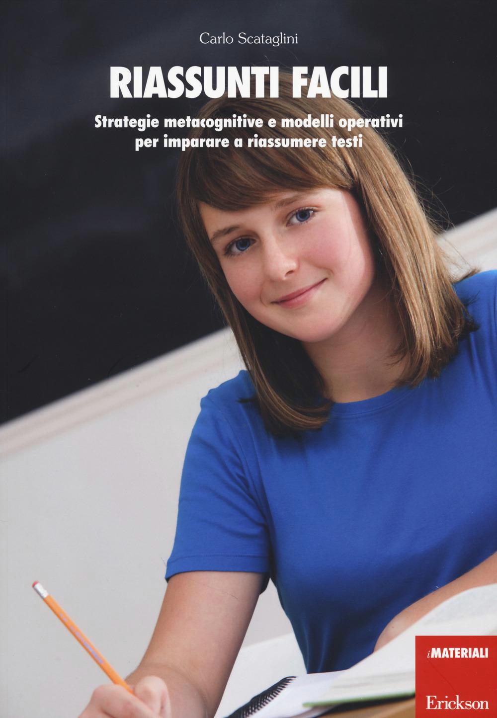 Il "riassunto" è uno di quei compiti che a scuola si assegna spesso, dando per scontato che gli alunni sappiano svolgerlo senza che occorra fornire loro indicazioni o insegnare particolari procedure. Riassumere, però, è un'attività complessa che coinvolge e richiede numerose abilità, che non sono innate negli alunni, ma devono essere insegnate e allenate. Questo volume propone un approccio metodologico e un modello operativo di aiuto per imparare a realizzare riassunti in maniera agevole ed efficace, con aiuti calibrati in funzione delle reali esigenze di ciascun alunno della classe, in linea con quella che può essere definita una normale didattica inclusiva. Tale approccio garantisce una buona qualità dell'intervento didattico, sia per gli studenti con disabilità, DSA o altri bisogni educativi speciali, sia per tutti gli altri. Per ognuna delle cinque principali tipologie di testo - narrativo, descrittivo, espositivo, argomentativo e regolativo - sono forniti:, modello operativo di aiuto, esercizi preparatori progressivi per l'acquisizione delle abilità: - saper leggere o ascoltare e comprendere un testo - saper dividere il testo in parti significative - saper individuare le informazioni principali in ciascuna sequenza o unità di testo - saper dare un titolo sintetico a ciascuna sequenza o unità di testo - saper riassumere ciascuna sequenza o unità di testo, materiali e schede da utilizzare in classe: riassunti da completare e da realizzare con aiuti graduali...