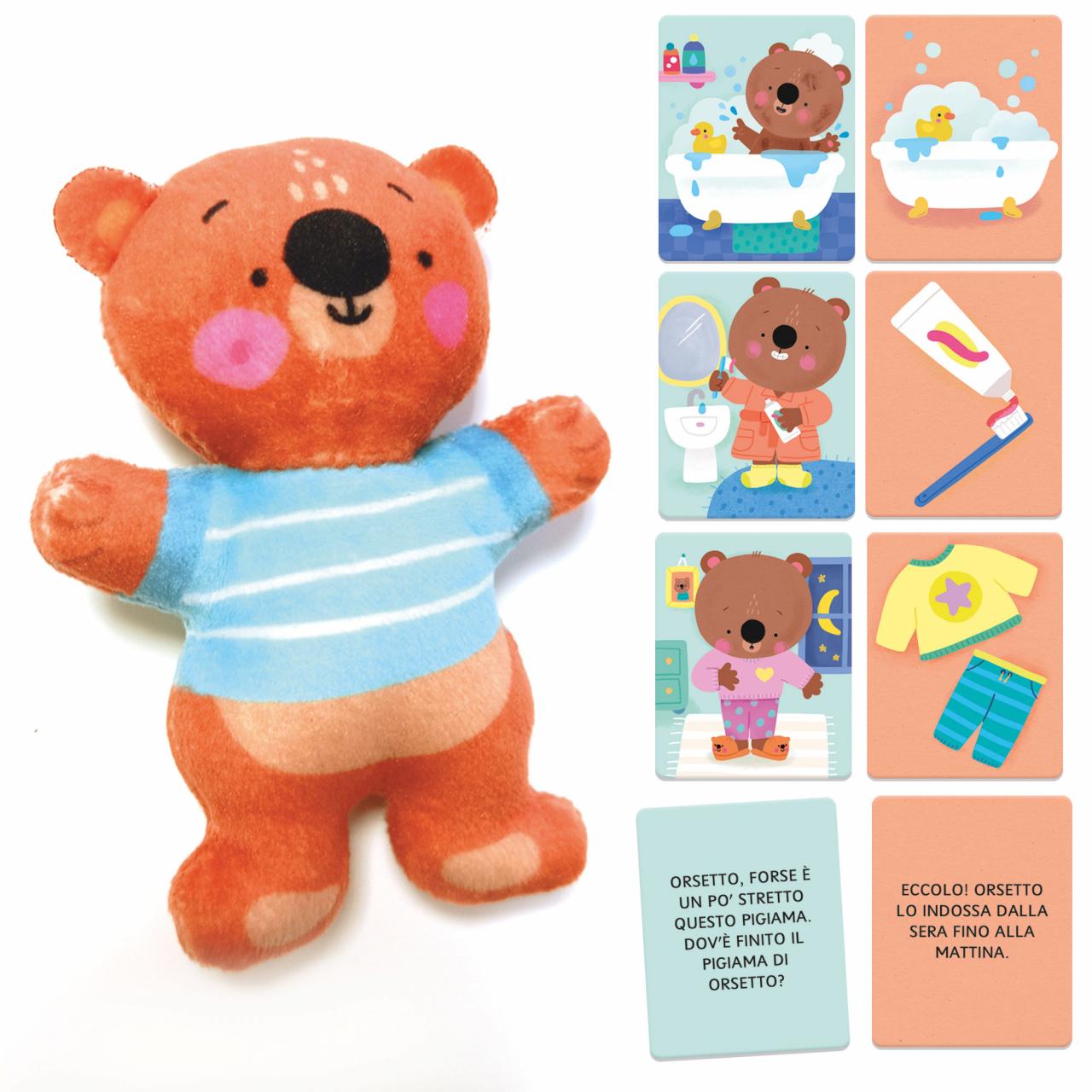 Che simpatico l’orsetto e com’è morbido! Queste originali flashcards permettono ai più piccoli di apprendere le routine della buonanotte sviluppando l’autonomia e l’affettività in modo spontaneo e coinvolgente.
