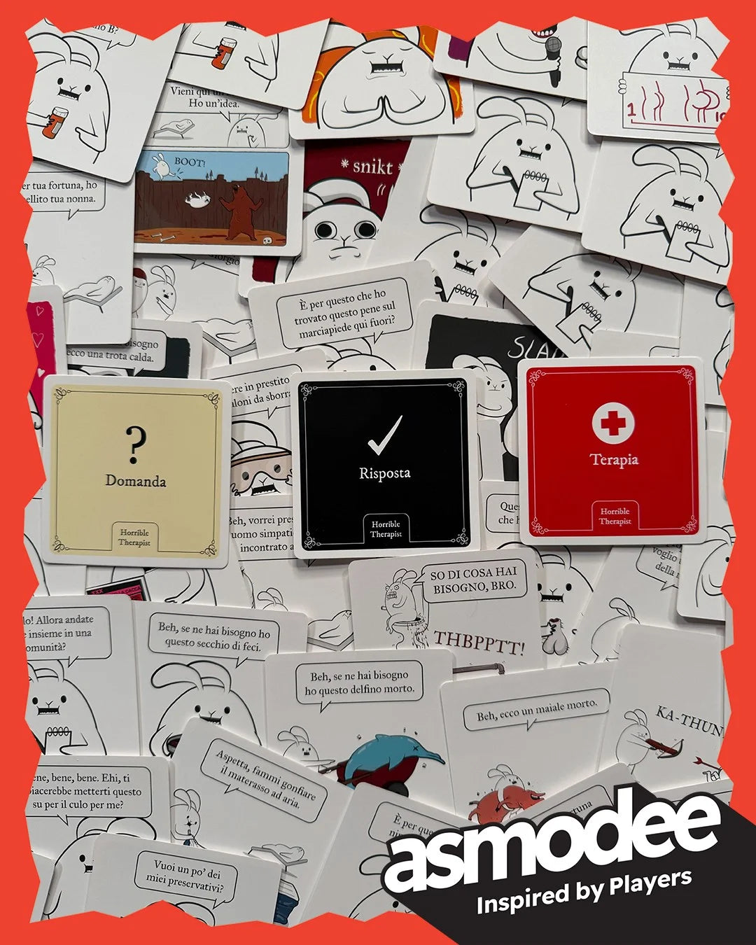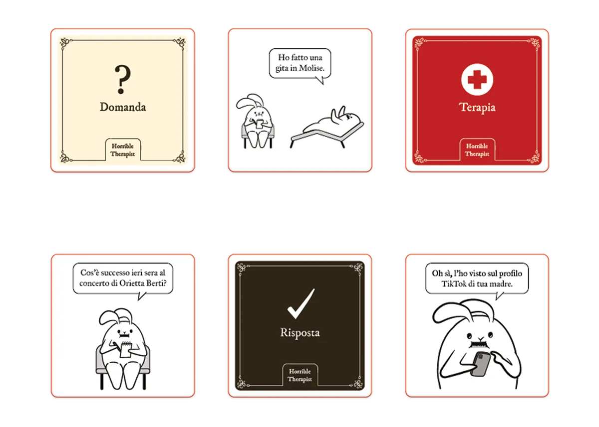 I giocatori si sfidano giocando carte che creano fumetti sulla terapia. Chiunque metta la carta finale più divertente, vince.