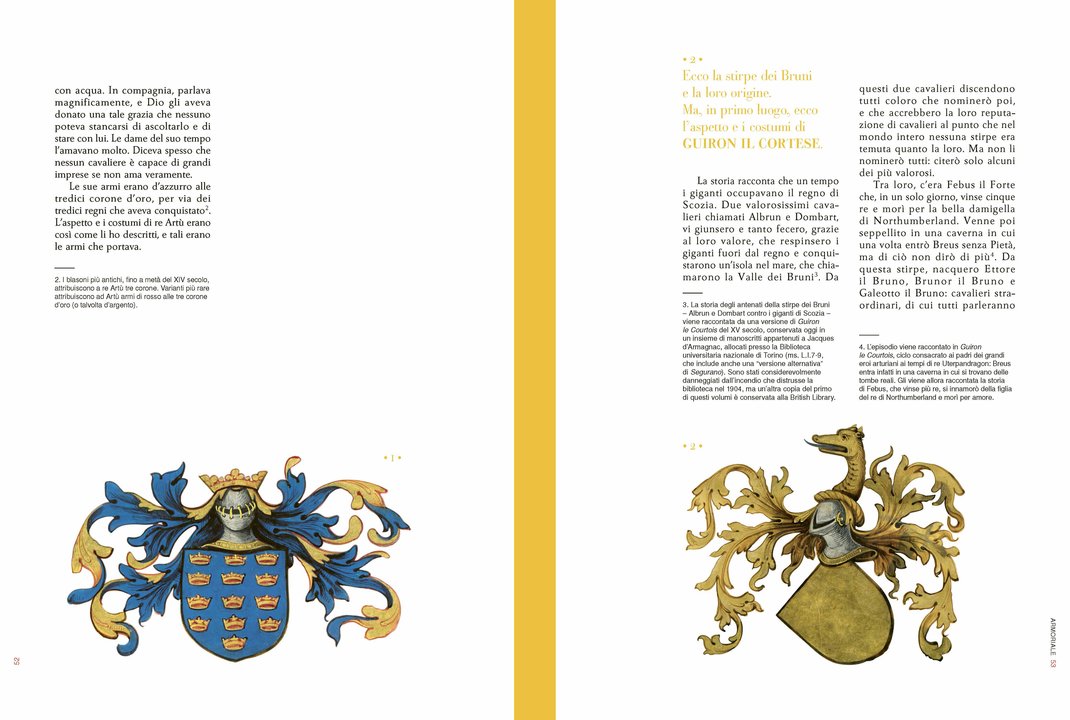 Uno straordinario manoscritto del XV secolo ne ha fissato per sempre i volti, gli stemmi e i destini. Tornato alla luce grazie al lavoro dell’esperto ricercatore Emanuele Arioli, si rivela oggi come un’“enciclopedia arturiana” splendidamente illustrata. Armi, amori e gesta leggendarie, princìpi cavallereschi e giuramenti solenni, regole dei tornei e genealogie… Frutto di ricerche scrupolose, quest’opera è l’invito ideale nel mondo perduto di re Artù e dei cavalieri della Tavola Rotonda. Il Bruno senza Gioia, Radouin il Persiano, Solinan del Bosco, Lupin delle Croci e tanti altri ritrovano finalmente un’identità, popolando un immaginario sconfinato.