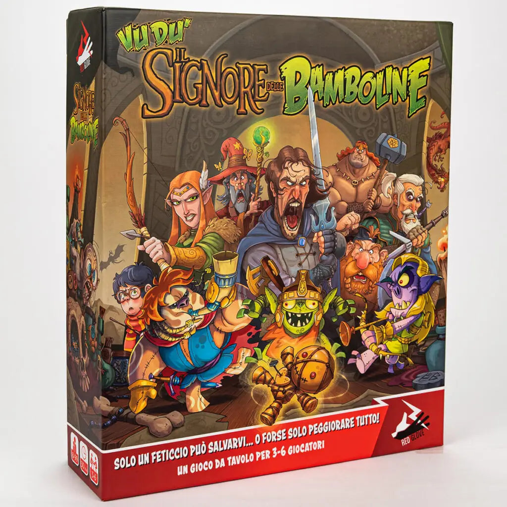 Tre pupazzi al re degli elfi sotto il cielo che riluce, sette bambole ai nanetti che rifuggono al luce… Nella terra di Buione un’ombra nera cala quando “qualcuno” ha fatto finire l’unica bambolina dell’Oscuro in mezzo a centinaia di feticci sorpresa degli irresistibili snack fabbricati nella terra di tre quarti… E ora sono maledizioni! Nella parodia più divertente del mondo fantasy, Vudù: Il Signore delle Bamboline ti invita a calarti nei panni dei servitori dell’Oscuro, dovrai lanciare maledizioni epiche ai tuoi avversari, esplorare luoghi misteriosi e ingurgitare snack improbabili alla ricerca dell’Unica Bambolina Vudù. Il tuo obiettivo? Recuperarla e piegare i tuoi rivali con maledizioni esilaranti e artefatti assurdi. Ma attento: ogni tua mossa può peggiorare tutto… in modo spettacolare!