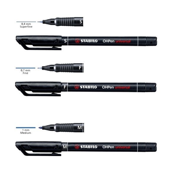 Fare presentazioni a scuola e al lavoro è più facile con STABILO OHPen universa, con impugnatura anti-scivolo e 3 ampiezze di tratto (S, F, M).
