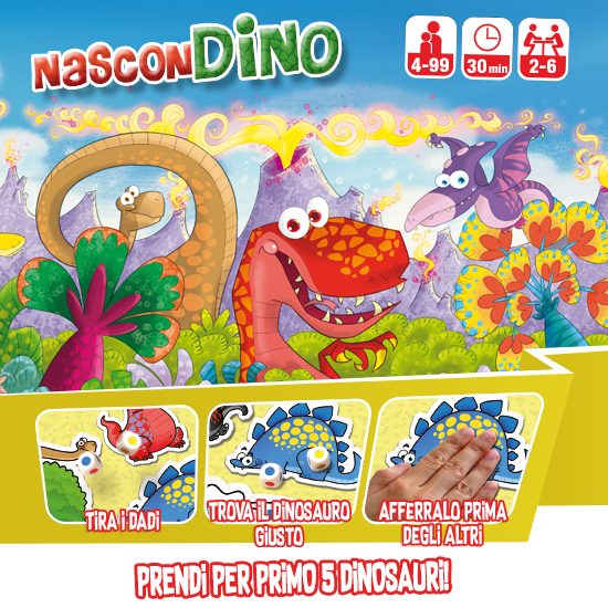 Si può giocare in due diversi modi: per allenare la memoria scovando i dinosauri nascosti sotto i cespugli o come divertente gioco di velocità acchiappando al volo il dinosauro con i colori giusti. E tu, che dinosauro sei? Un rapido Velocisauro o un attento Memorisauro?