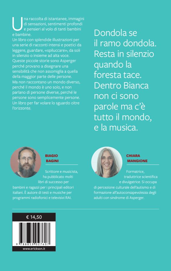 Queste storie sono Asperger perché provano a disegnare una sensibilità che non assomiglia a quella della maggioranza delle persone, raccontano pensieri numerosi, rumorosi e veloci, suoni che esplodono dentro e abbracci che procurano dolore fisico, la confusione del non saper leggere cosa ti aspetti da me e la frustrazione del non poter condividere cosa a me sembra così naturale e chiaro. Ma anche il piacere profondo e strutturato di interessi che rendono felici, riposano e ristorano (che siano per i dinosauri, le fotografie o i canarini), un senso forte dell’amicizia che spesso resiste coraggiosamente all’incomprensione, il silenzio bellissimo e nutriente della solitudine che ridà pace, tranquillità ed energia.