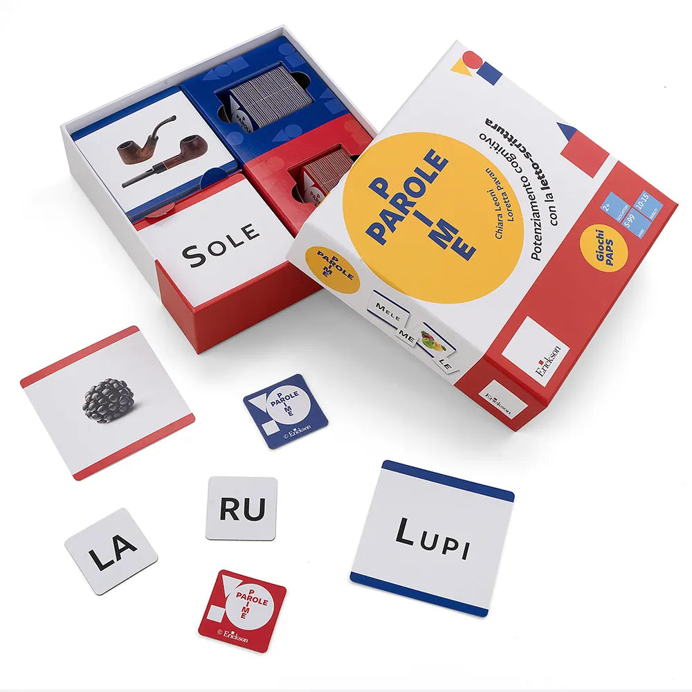Un sistema di giochi e divertenti attività basate sul metodo PAPS progettate per consolidare le funzioni attentive e stimolare i primi processi alla base della lettura e della composizione di parole. Attraverso l’utilizzo delle parole bisillabe a struttura CVCV vengono stimolate le diverse funzioni cognitive e linguistiche quali la fusione e segmentazione sillabica, l’accesso lessicale e il pensiero inferenziale nonché l’arricchimento delle rappresentazioni mentali.