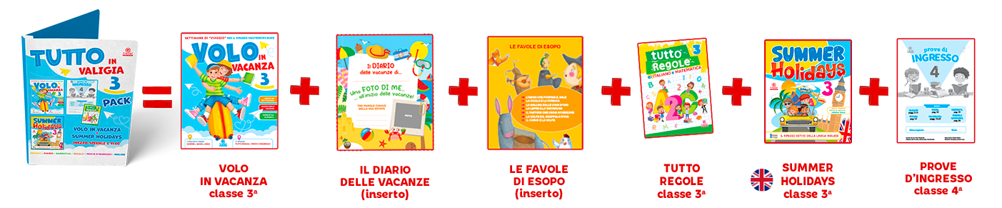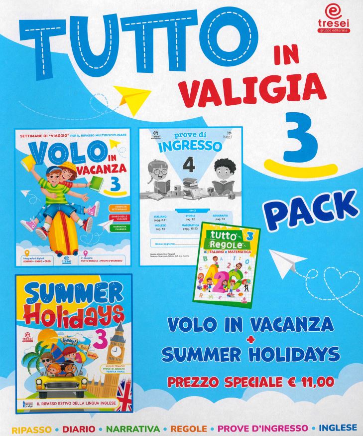 Tutto in valigia 3 PACK è il pack didattico pensato per il ripasso estivo, dedicato ai bambini della Scuola Primaria.