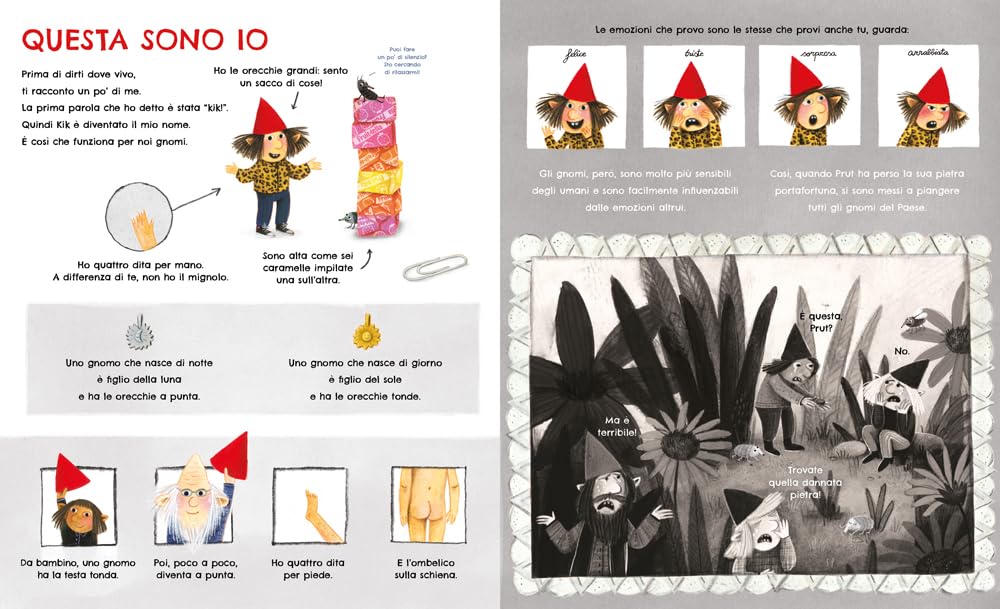 Gli gnomi esistono veramente. E non stanno solo nei boschi, ma quelli moderni vivono anche accanto a noi nelle città. Quando sai dove cercare, gli indizi della loro presenza diventano numerosissimi! il piccolo Kik accompagna i lettori a conoscere da vicino il suo mondo nascosto: la sua famiglia, i vestiti tipici, gli animali domestici, la casa piena di oggetti degli umani riutilizzati in modi creativi per costruire di tutto.