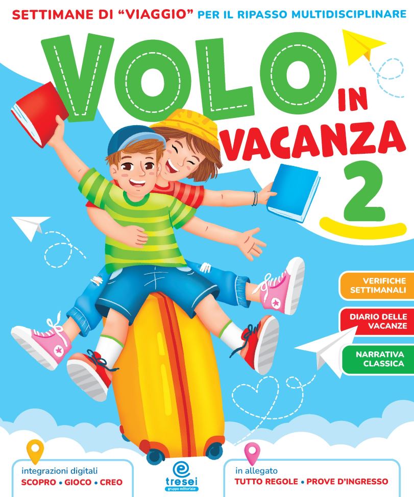 Volo in vacanza 2 è il libro estivo per il ripasso multidisciplinare e dedicato ai bambini della Scuola Primaria. Ogni settimana di “viaggio” trasporta i bambini in una meta particolare, coinvolgendoli con attività relative al programma della propria classe. Alla fine di ogni settimana vengono proposte delle pagine di verifica.