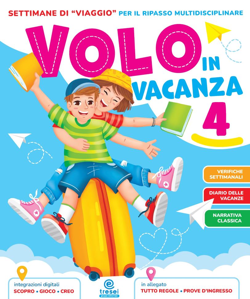 Volo in vacanza 4 è il libro estivo per il ripasso multidisciplinare e dedicato ai bambini della Scuola Primaria. Ogni settimana di “viaggio” trasporta i bambini in una meta particolare, coinvolgendoli con attività relative al programma della propria classe. Alla fine di ogni settimana vengono proposte delle pagine di verifica.